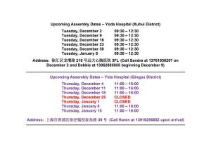 - VOLUNTEER at our assembly room in Yoda Hospital in Xuhui district. Basically, you will be sorting donated goods (similar to #4 above). All volunteers 15 years old and above are welcome in groups up to 12 people at a time.