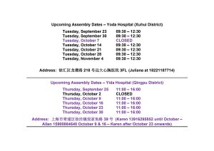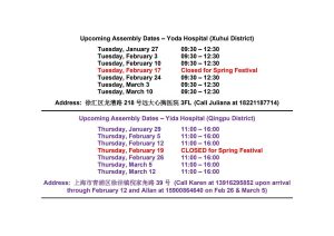 - VOLUNTEER at our assembly room in Yoda Hospital in Xuhui district. Basically, you will be sorting donated goods (similar to #4 above). All volunteers 15 years old and above are welcome in groups up to 12 people at a time.
